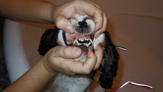 After fighting the breeder gave Flashes parents to her. Now she was faced with two Cavaliers in very poor health. Matts, teeth being lost from chewing on cages to get out and not to mention heartworms. She took these scared, extremely thin Cavaliers and made them family.